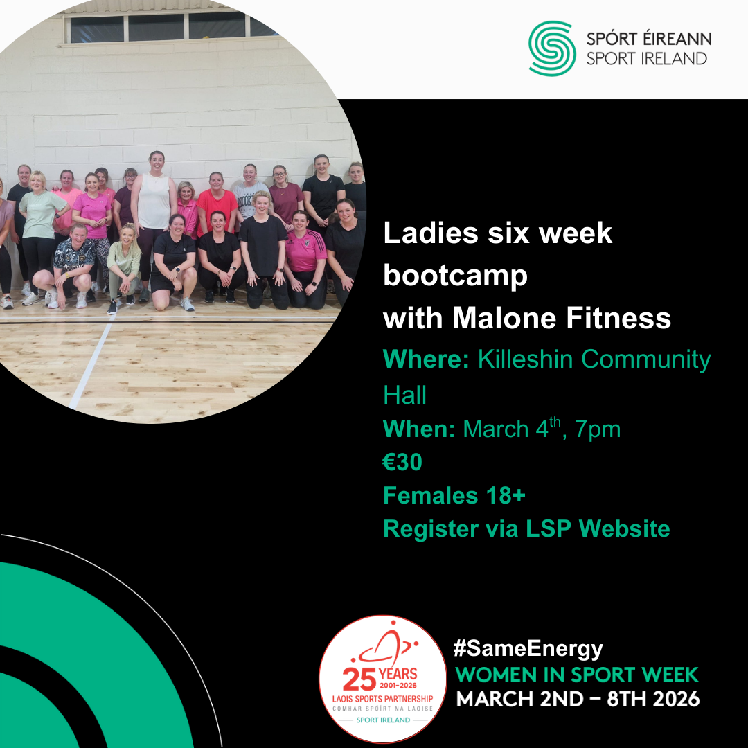 When: Starting Wednesday, 4th March, 7.00pm Where: Killeshin Community Hall Age: Females 18+