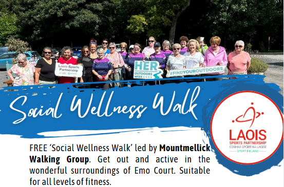 Emo Court Emo Court & Parklands Emo Co. Laois, Emo, Leinster, IrelandFREE ‘Social Wellness Walk’ led by Mountmellick Walking Group. Get out and active in the wonderful surroundings of Emo Court. Suitable for all levels of fitness. Refreshments will be provided afterwards.