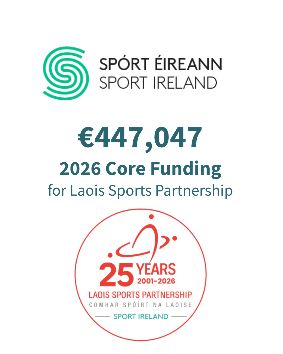 - Laois Sports Partnership will receive €444,047 in core funding in 2026