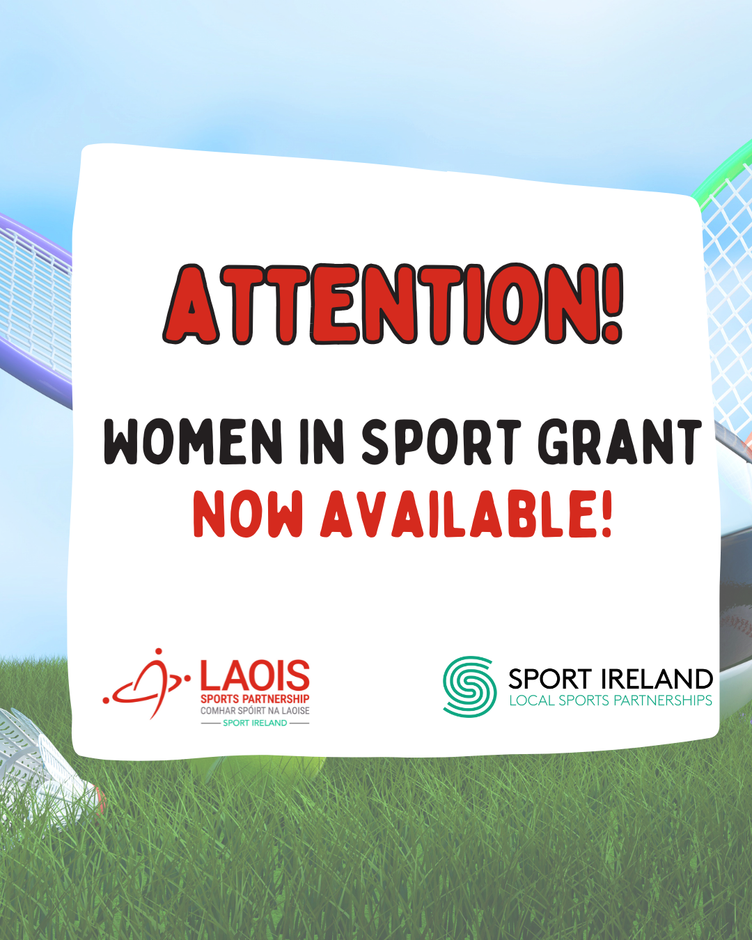 Laois Sports Partnership is delighted to invite applications for the Women in Sport Grant Scheme 2026. This opportunity for organisations/clubs/groups based in County Laois comes directly in-line with Sport Ireland’s vision for women in sport where women have an equal opportunity to achieve their full potential, while enjoying lifelong participation and involvement in sport.