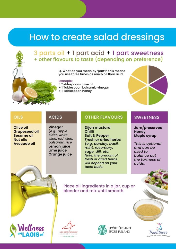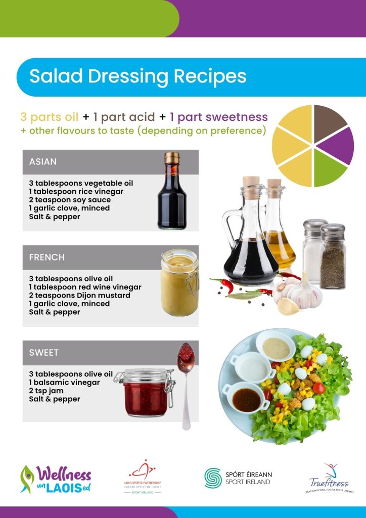 We had an interesting discussion with some of the Wellness UnLAOISed participants last week. Some participants said that they eat more salads during summer time and others said that they would love to eat more salads but they don’t know how to add flavour to them, so we created this resource! We hope it is useful.