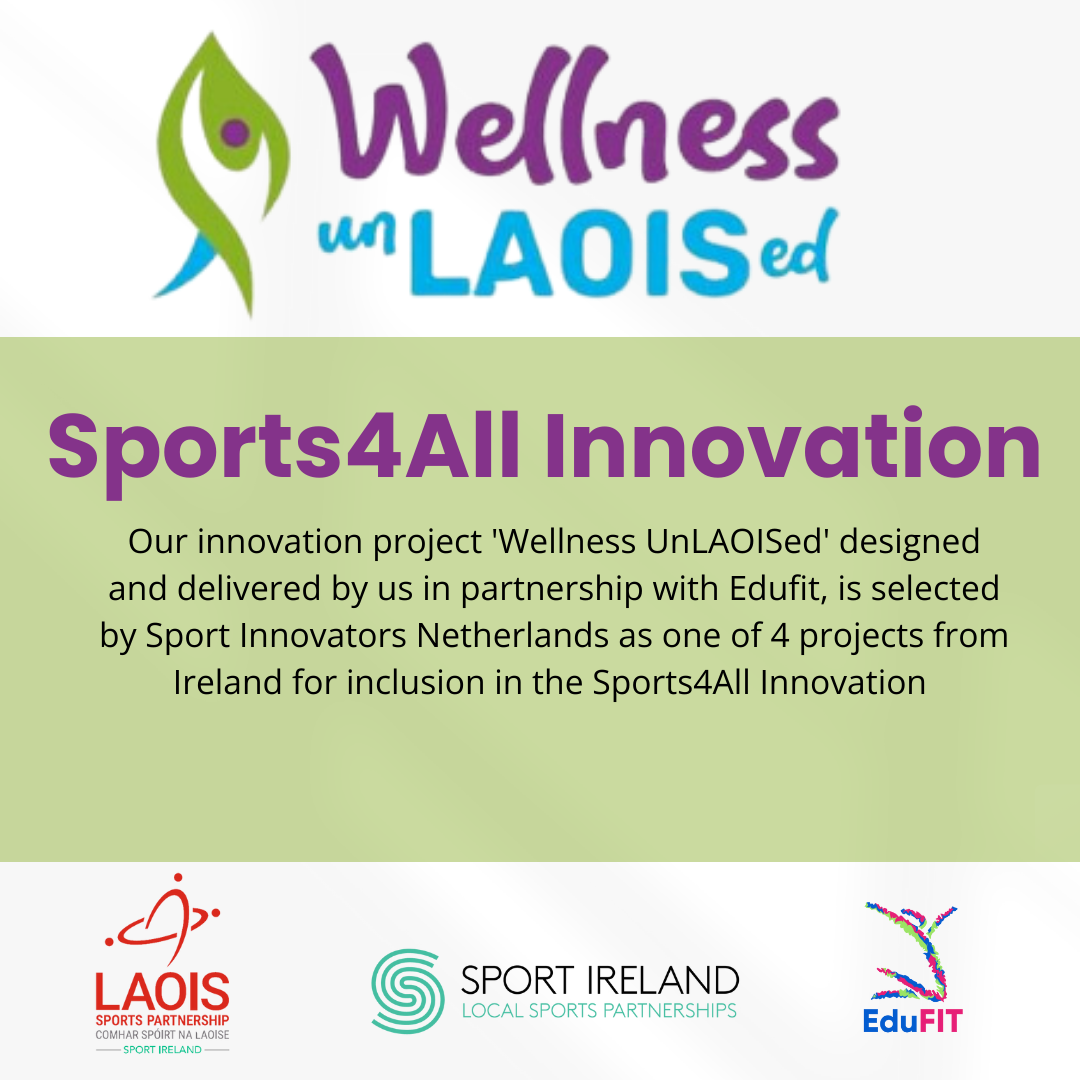 Sports4All Innovation - Our innovation project 'Wellness UnLAOISed' designed and delivered by us in partnership with Edufit, is selected by Sport Innovators Netherlands as one of 4 projects from Ireland for inclusion in the Sports4All Innovation.