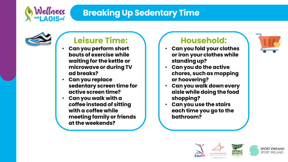 This information was included in the health education workshop delivered to Wellness UnLAOISed participants today. Wellness UnLAOISed is designed and delivered by EduFit in partnership with Laois Sports Partnership and Offaly Sports Partnership and funded by Sport Ireland.